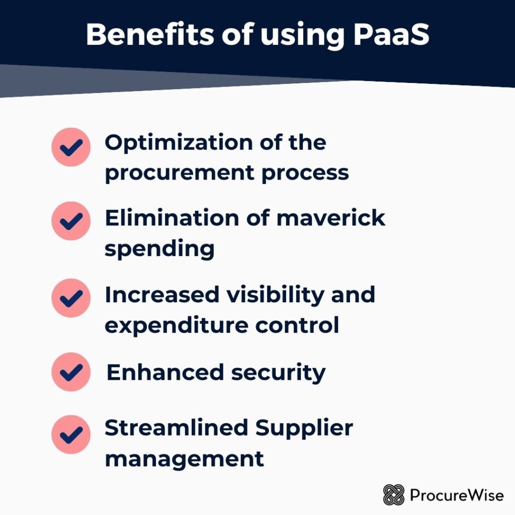 With PaaS, these tasks can be delegated to specialized procurement service providers who offer more efficient and cost-competitive solutions. These actions allow companies to save time, money, and resources that can be redirected to other critical areas of business.